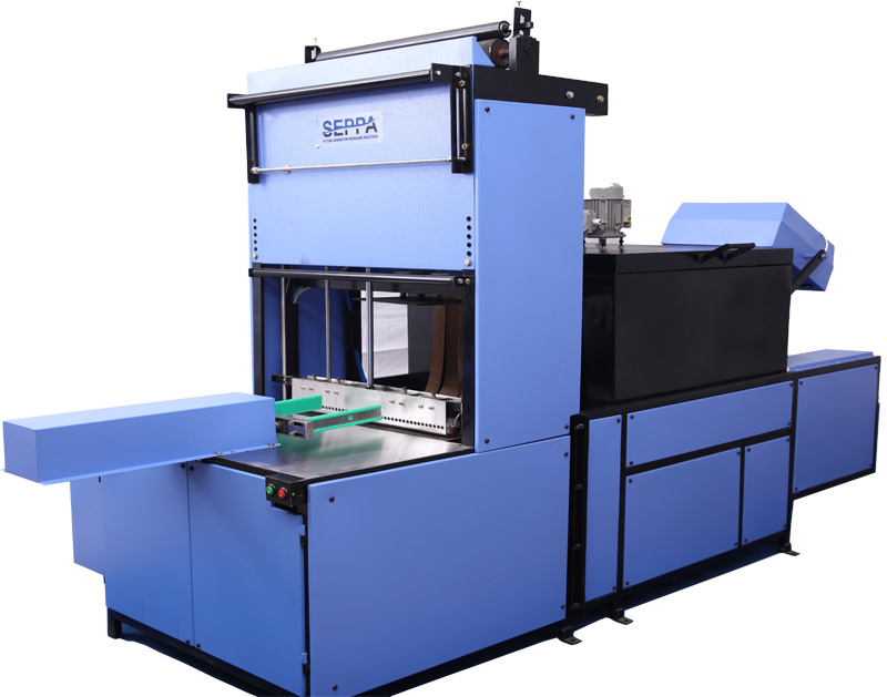 • The machines uses a twin reel shrink film system