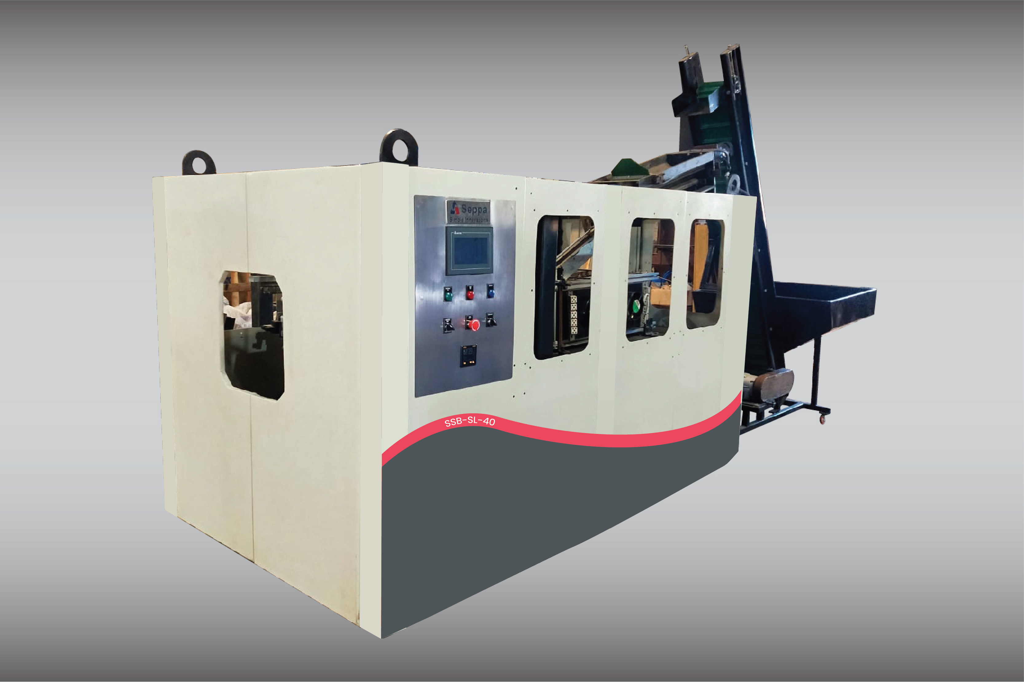 Machine for the production of PET bottles 90ml – 2000 ml SSB-SL-10 is a 1-cavity, fully-automatic, PNEUMATIC blow moulding machine dedicated for production of PET bottles 90ml-2000ml with capacity 1000-1200 bph for 500ml bottles. One of its key advantages is the efficient oven with special lamps (IR) for plasticising preforms.
