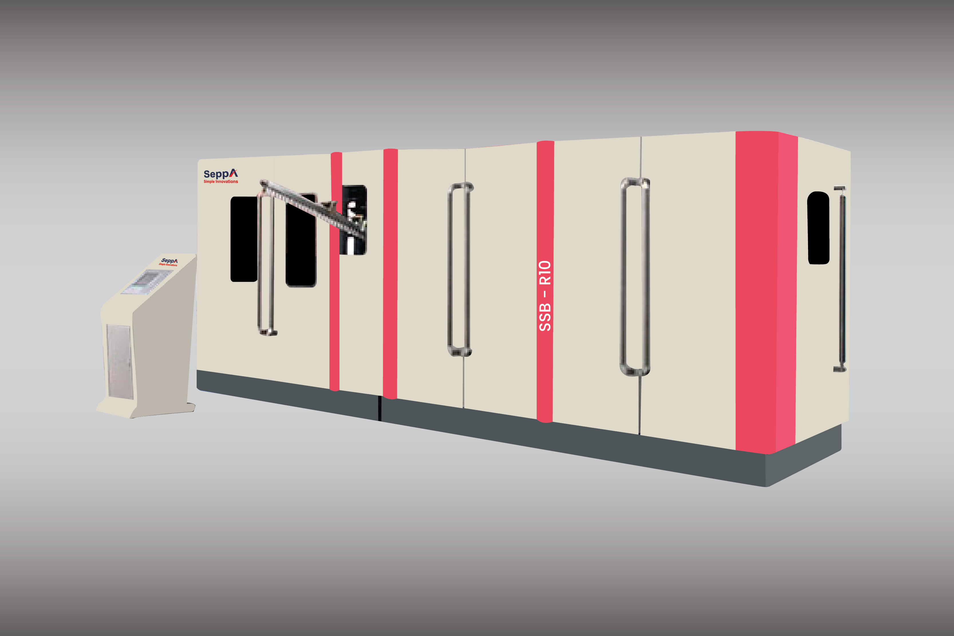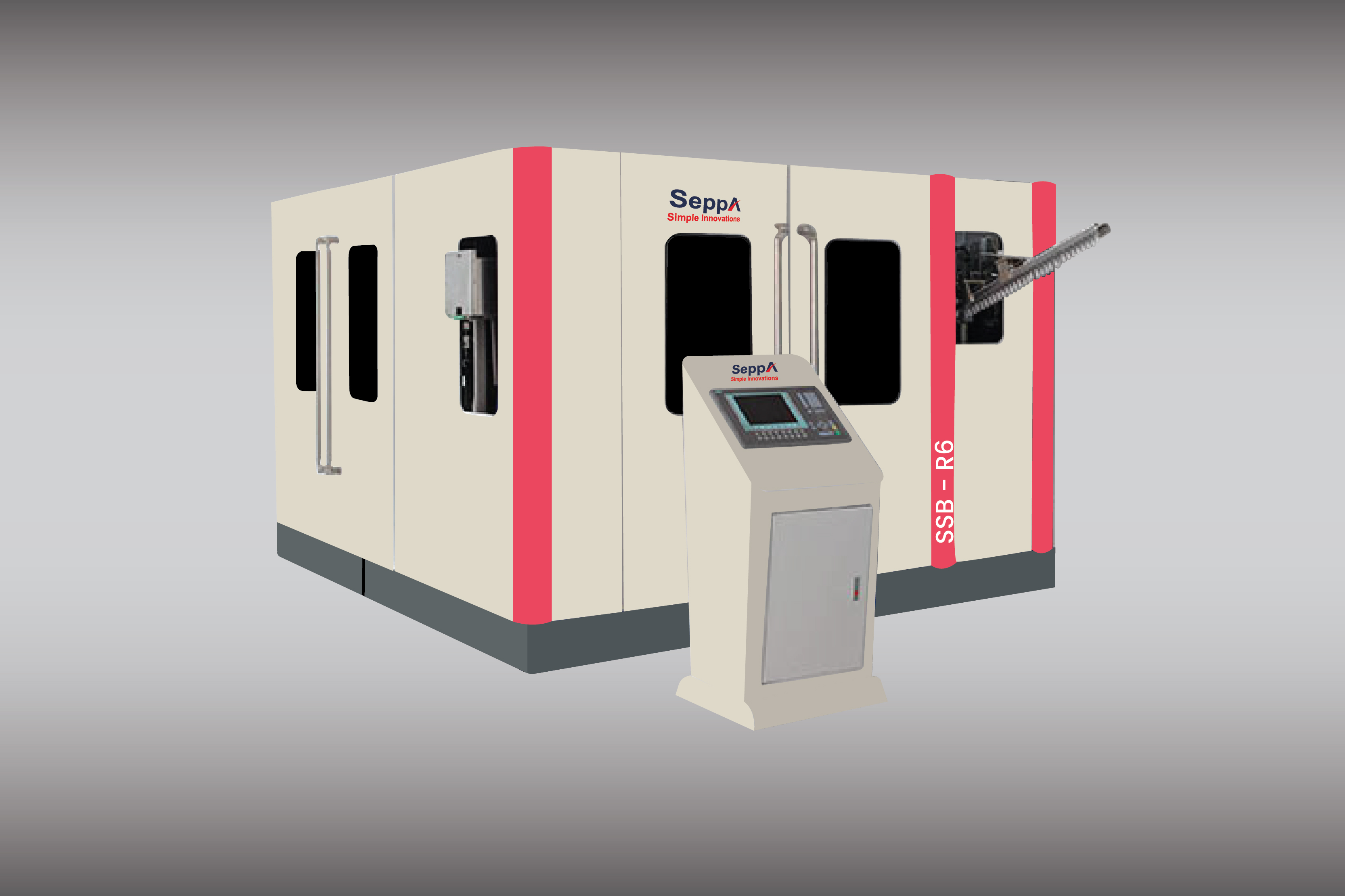 Machine for the production of PET bottles 90ml – 2500 ml SSB-R12 is a 12-cavity, fully-automatic, Rotary blow moulding machine dedicated for production of PET bottles 90ml-2000ml with capacity 20000-21600 bph for 500ml bottles. One of its key advantages is the efficient oven with special lamps (IR) for plasticising preforms.